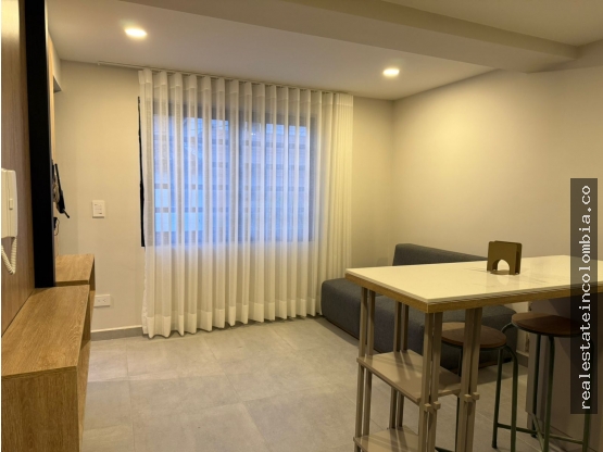 Apartamento nuevo amoblado en arriendo de dos alcobas, dos baños y balcón. Ubicado cerca de la avenida 73, cerca de la estación estadio, de bares, restaurantes y sitios de interés. Es un piso 2 sin ascensor y mide 65 metros cuadrados. Tiene sala comedor con cocina integral bien equipada, barra tipo americana, baños social y balcón. Dos alcobas con closet, con baño privado en la alcoba principal. Hermosos acabados y equipamiento completo. El apartamento es muy ventilado e iluminado. Incluye todos los servicios (agua, energía, luz, Internet de fibra óptica). Excelente para profesionales, estudiantes o nómadas digitales.